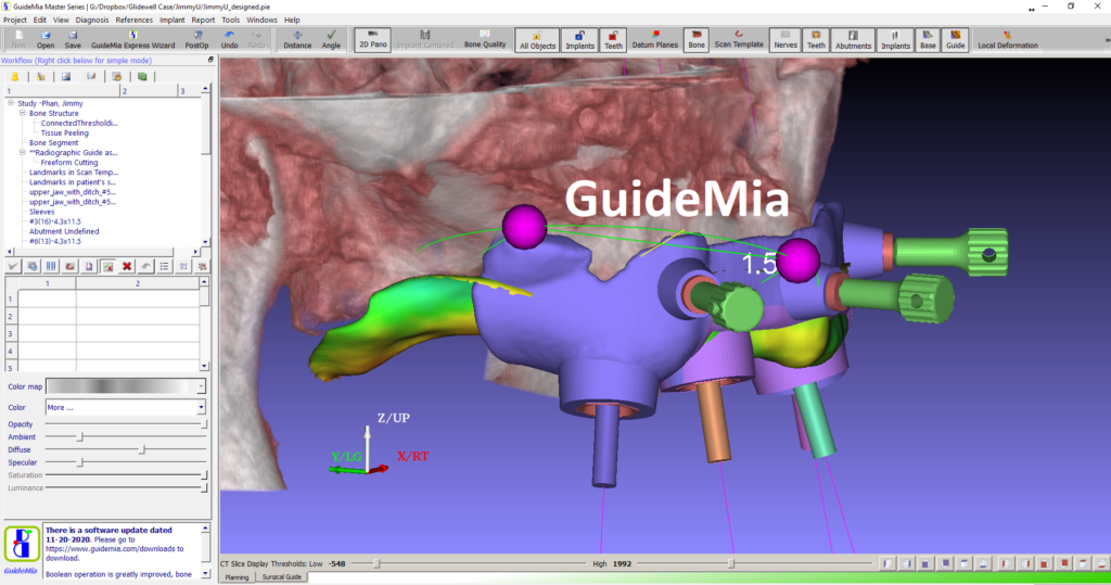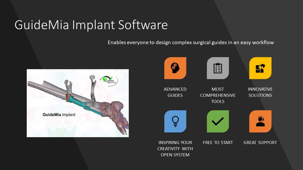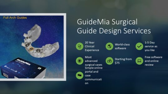 Back to 2012, GuideMia Implant System is the only software in the market that has open turnkey surgical guide design functions and full fledged workflow support. It is the only system that holds a US patent for surgical guide design software (US8543234B2 – Method and software system for treatment planning and surgical guide CAD/CAM). At GuideMia we offer our clients a best combination of software and clinical experiences. With more than 20 year digital implantology and guided surgery experience we developed our implant solution based on tremendous inputs from clinicians, and based on more than 20 year CAD/CAM and 3D modeling development. During the past few years, we have help clients from more than 10 countries establish their surgical guide services.